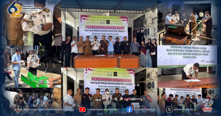 Pada Selasa (21/04/2026), Lembaga Pemasyarakatan (Lapas) Kelas IIA Tembilahan turut berpartisipasi dalam kegiatan pemusnahan barang bukti terlarang yang dilaksanakan di Kantor Kejaksaan Tembilahan. Kegiatan ini merupakan bentuk sinergi antara aparat penegak hukum dalam upaya menjaga keamanan dan ketertiban, khususnya di lingkungan pemasyarakatan. Kehadiran jajaran Lapas Tembilahan menunjukkan komitmen kuat dalam mendukung penegakan hukum serta pemberantasan peredaran barang terlarang.