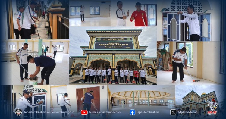 Lembaga Pemasyarakatan Kelas IIA Tembilahan melaksanakan kegiatan kerja bakti insan pemasyarakatan dalam rangka menyambut bulan suci Ramadhan, Rabu (18/02/2026). Kegiatan tersebut dipusatkan di Masjid Miftahul Jannah yang berada di Jalan Subrantas, Tembilahan, dan berlangsung mulai pukul 09.00 hingga 11.30 WIB.